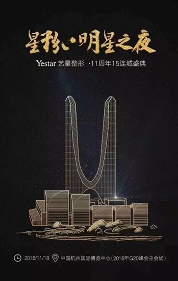 11月18日,美丽的西子湖畔,G20会场将再度星光闪耀,Yestar【星粉·明星之夜】暨艺星整形11周年15连城盛典即将耀世启幕!